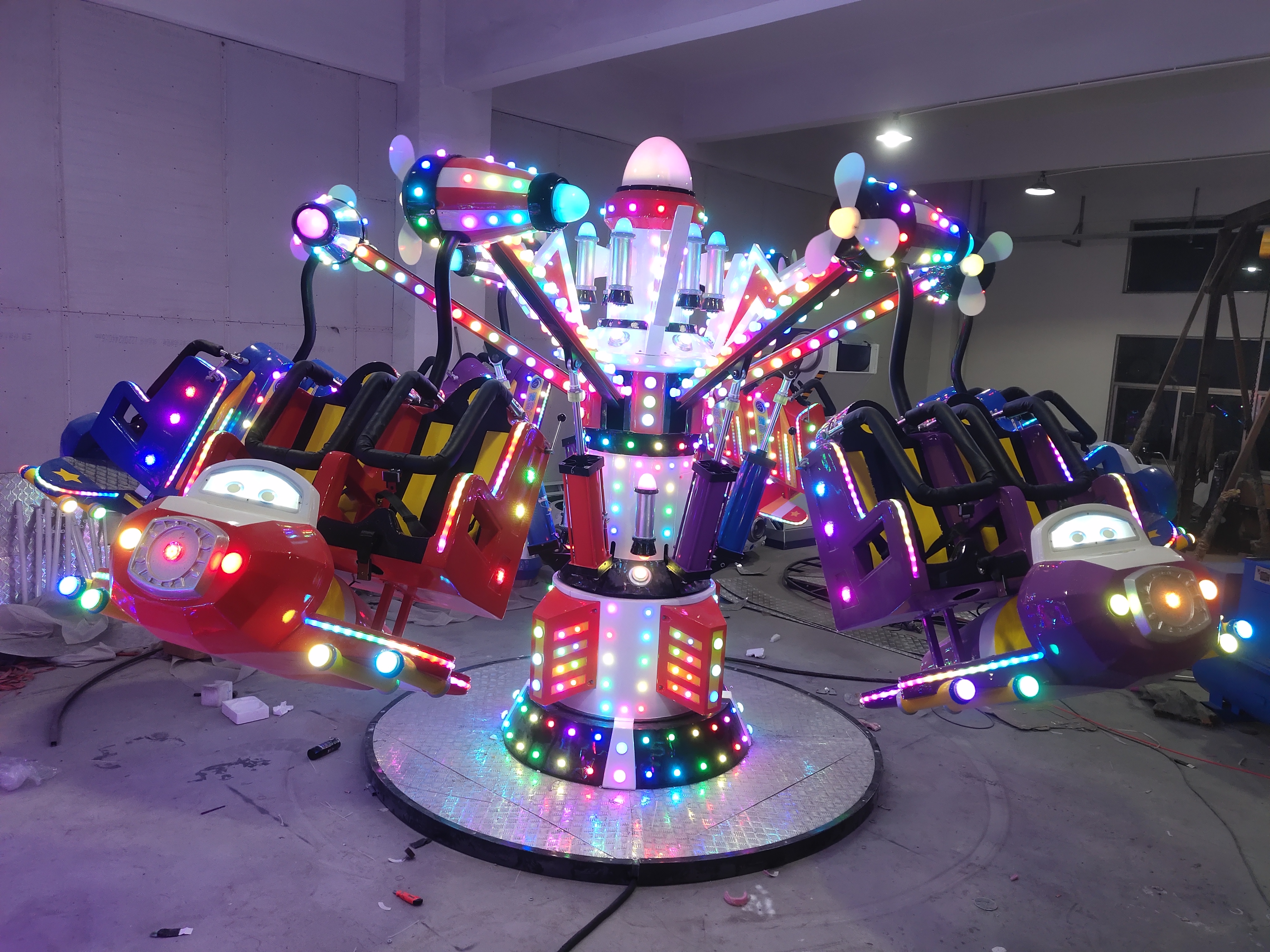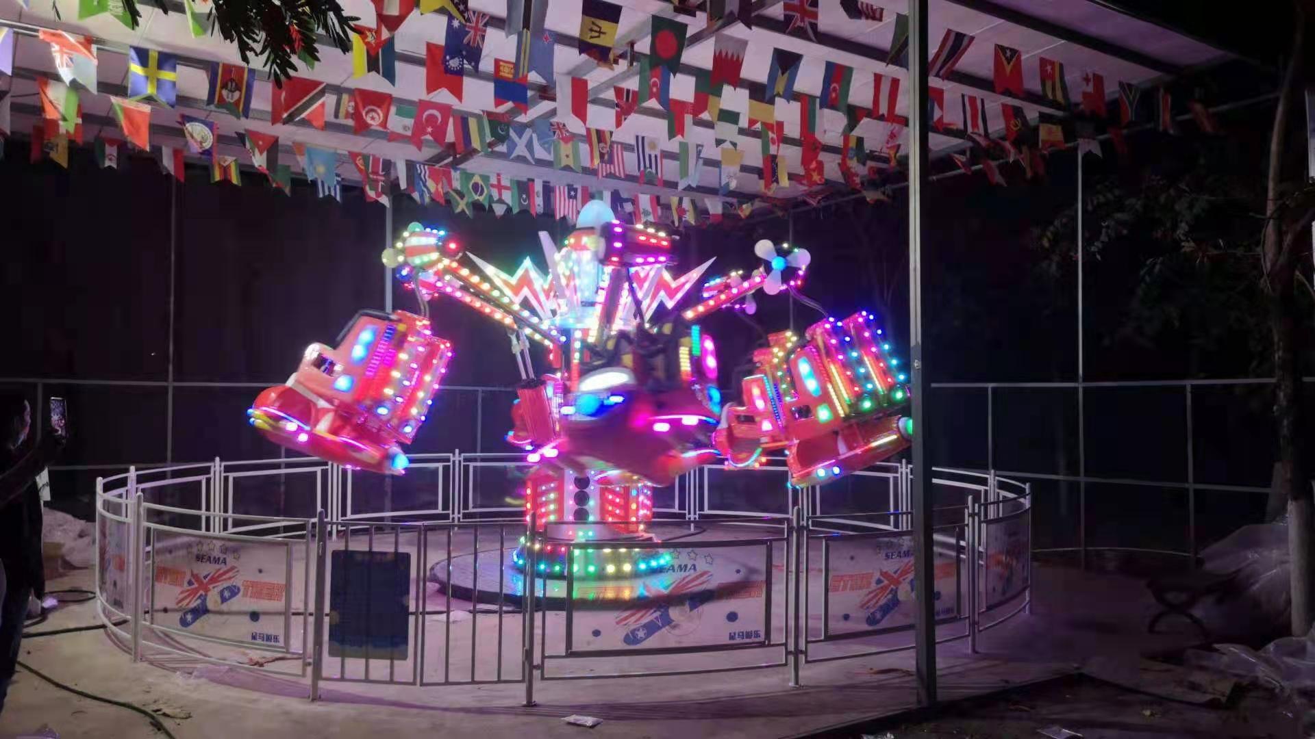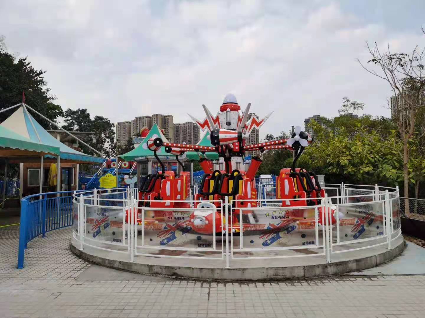 游艺机是本公司集中力量研制出来的新型产品。是一款根据市场需求,结合人们探知未来的好奇心,延续科幻主题的风格而推出的产品。其中,设备在运行的时候配合炫彩的光,容易让玩家产生一种对未来、对科技产生一种探索的欲望。设备采用旋转弹跳交错的运动模式,体现遨游太空的感觉。弹跳旋转设计,可以体验者在游玩的时候感受设备带来的离心与失重的双重交错感受,产生很好的互动效果,游戏过程比温和舒适,产品适合多数玩家在公园、游乐园、青少年宫等单一项极佳的游乐设施投资选择。